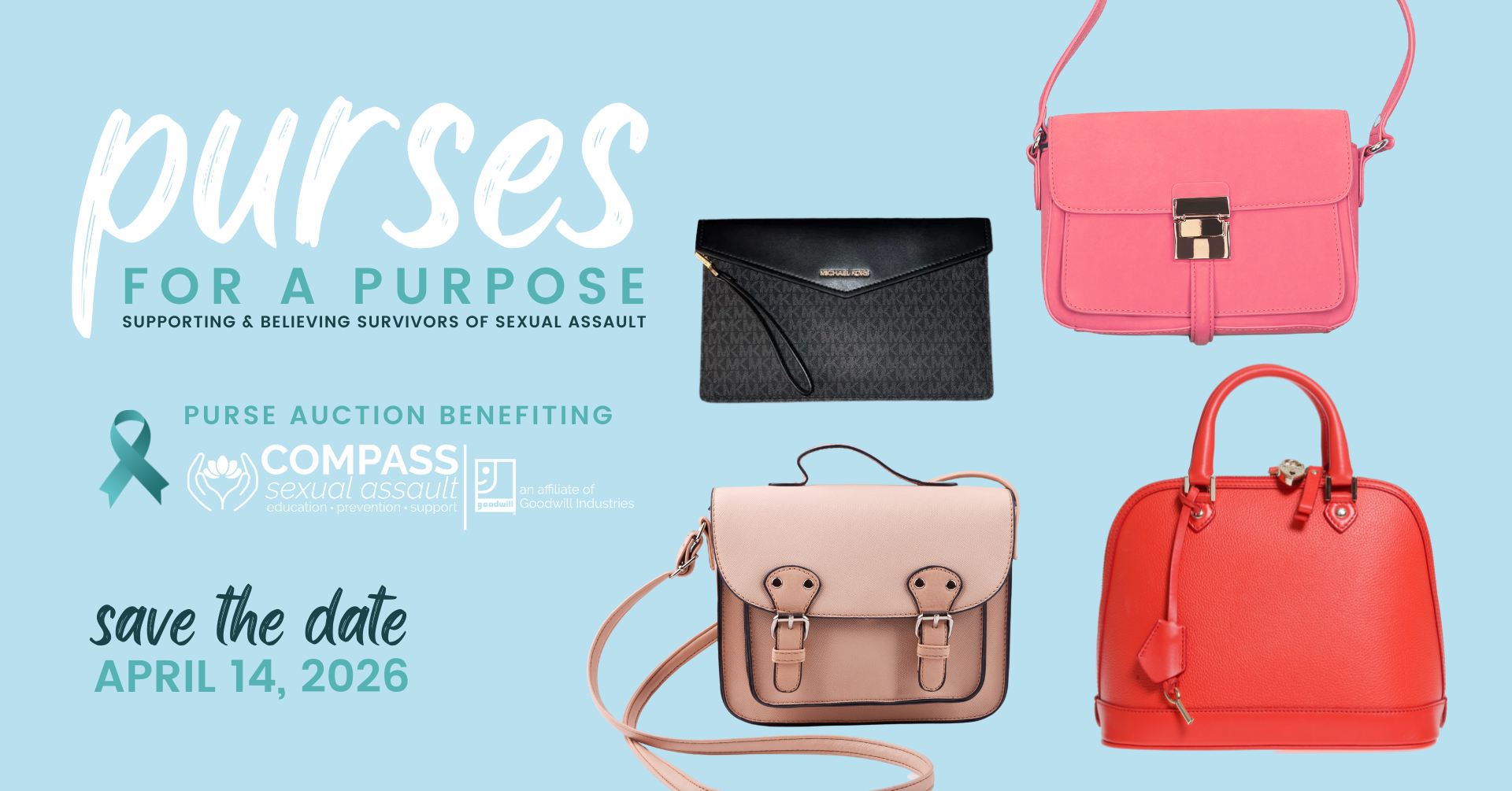 Tote, satchel, clutch or hobo — whatever style handbag you favor, you can find it at Purses for a Purpose. A signature COMPASS (Sexual Assault Education, Prevention & Support) (COMPASS) event, Purses for a Purpose kicks off Sexual Assault Awareness Month with an online purse auction and a culminating in-person celebration from 5:30-8 p.m. April 14 at the Alex D Krassas Event Center (251 25th St. NW, Canton).